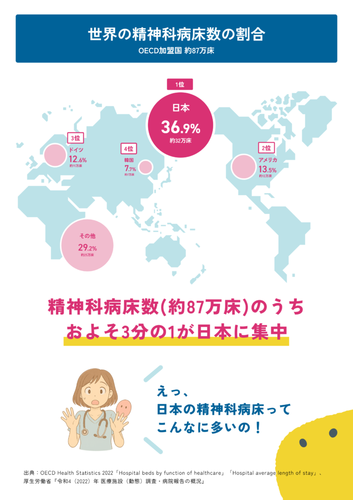 OECD加盟国の約87万床のうち、およそ3分の1が日本に集中しています。